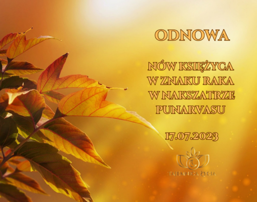 17lipODNOWA – NÓW KSIĘŻYCA W ZNAKU RAKA, W NAKSZATRZE PUNARVASU17.07.2023 Dzisiejszy Nów Księżyca przypada w znaku Raka, w nakszatrze Punarvasu przynależnej Jowiszowi – planecie